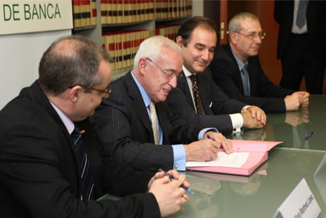 El Convenio de la Banca es un acuerdo entre las partes que promete una acción futura. En este caso la patronal y los sindicatos CCOO y UGT han alcanzado un principio de acuerdo en el convenio de banca que prevé una congelación salarial para 2011 y 2012, mientras que en 2013 y 2014 se contempla un incremento de sueldo del 1,25 % y del 1,50 %, aunque ligado a la evolución de las entidades.